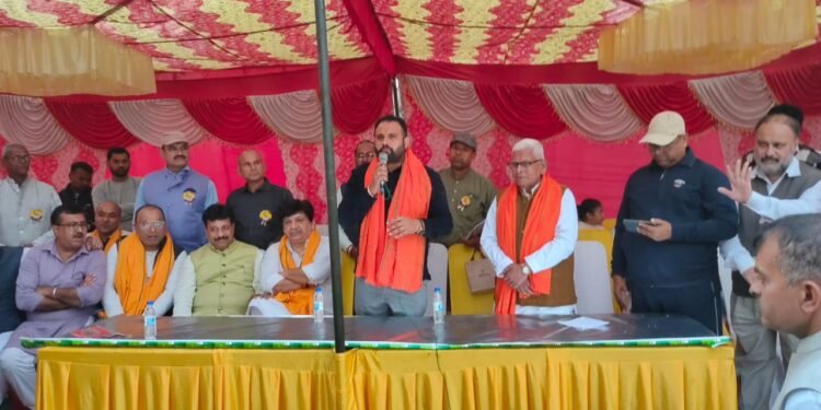 कैप्शन-बस्ती पीरदाद गाखल रोड नहर पर छट पर्व के दौरान मंच पर भाजपा महामंत्री अशोक सरीन हिक्की,प्रधान भोला खुशवाहा,उद्योगपति विशाल मित्तल(शालू),सोनू चौहान,दिनेश भगत व अन्य
