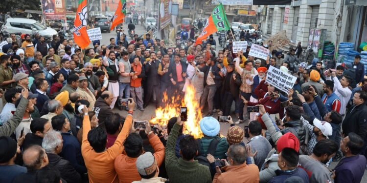 कैप्शन-पुतला फूक प्रदर्शन के दौरान जिला भाजपा प्रधान सुशील शर्मा,मनोरंजन कालिया,के.डी भंडारी,सरबजीत मक्कड़,अनिल सच्चर,अशोक सरीन हिक्की,राजेश कपूर,अमरजीत गोल्डी व अन्य सैकड़ों भाजपा कार्यकर्ता।