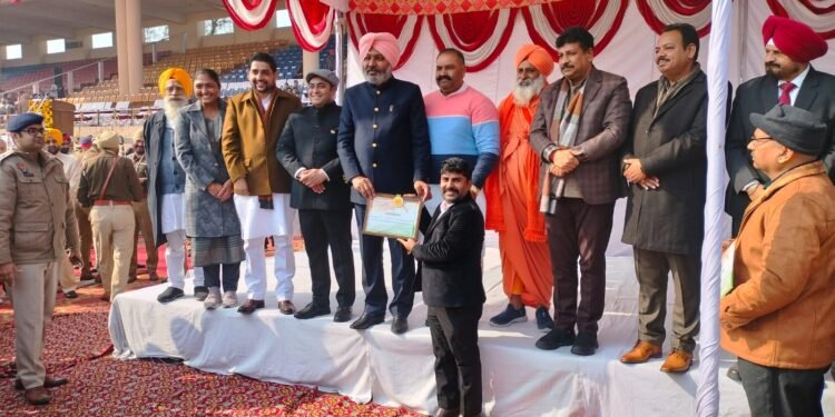 जालंधर 26 जनवरी (अली) जालंधर के मशहूर समाजसेवी और गरीबों के हमदर्द कहे जाने वाले कांग्रेस नेता जब्बार खान को उनके अच्छे कामों के प्रति लगाव की वजह से आज गणतंत्र दिवस पर पंजाब सरकार की ओर से वित्त मंत्री हरपाल सिंह चीमा ने विशेष saman सर्टिफिकेट देकर सम्मानित किया। इस अवसर पर मेंबर ऑफ पार्लियामेंट सुशील कुमार रिंकू, राज्यसभा मेंबर सेंचेवाल और डीसी जालंधर के अलावा अन्य उच्च अधिकारी भी मौजूद थे।
