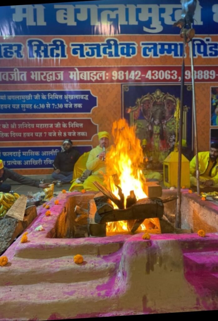 जालंधर के प्रसिद्ध मंदिर मां बगलामुखी धाम गुलमोहर सिटी नजदीक लम्मां पिंड चौक में मां बगलामुखी जी के निमित्त श्रृंखलाबद्ध दिव्य हवन यज्ञ का आयोजन मंदिर परिसर में मां बगलामुखी धाम के संचालक एवं संस्थापक नवजीत भारद्वाज की देख-रेख में हुआ। सर्व प्रथम मुख्य यजमान गुरमतप्रित सिंह