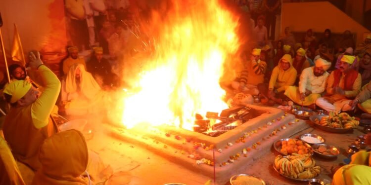 सर्व प्रथम ब्राह्मणों द्वारा पंचोपचार ,नवग्रह, षोढषोपचार ,गौरी गणेश एवं कुंभ पूजन इत्यादि सम्पन्न करके मुख्य यजमान बलजिंदर सिंह से सपरिवार पूजा अर्चना करवाई गई। आज मां बगलामुखी धाम में हवन-यज्ञ उपरांत धाम के मुख्य सेवादार नवजीत भारद्वाज ने आए हुए मां भक्तजनो से विचार व्यक्त करते हुए कहा की आध्यात्म के अलग-अलग मार्ग हैं, भक्ति का मार्ग, अनुभव का मार्ग और ज्ञान का मार्ग। भक्ति का मार्ग ईश्वरवादी मार्ग है। इस मार्ग से ब्रह्म की प्राप्ति संभव है। भक्ति मार्ग वह है, जहां हमें विश्वास करना पड़ता है। ईश्वर अथवा भगवान अलग-अलग धर्मों के हिसाब से अलग-अलग हो सकते हैं। धर्मों को लेकर विविधता भी है। सर्वाधिक विविधता भारत में है। लेकिन इस विविधता के बीच भी भक्ति मार्ग से ईश्वर की प्राप्ति संभव है और भक्ति मार्ग से ही ईश्वर प्राप्ति संभव है, लेकिन इसके लिए विश्वास जरूरी है।’ यह बात मां बगलामुखी धाम के प्रेरक प्रवक्ता नवजीत भारद्वाज जी ने उपस्थित माँ भक्तों को संबोधित करते हुए कही। उन्होंने कहा कि भक्ति मार्ग और आध्यात्म पर हालांकि दार्शनिक, वैज्ञानिक और अस्तिक इस पर विश्वास नहीं करते। चूंकि ईश्वर को किसी ने नहीं देखा, लेकिन भक्ति और विश्वास से ईश्वर की अनुभूति की जा सकती है। यह तभी संभव है जब ध्यान-योग से जीव स्वयं को ब्रह्म स्वरूप में अनुभूत करे। ईश्वर की अनुभूति का यह प्राचीन मार्ग है।