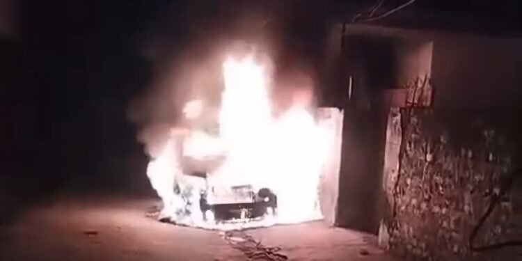 जालंधर में घर के बाहर खड़ी गाड़ी को आग लगाने की खबर सामने आई है। घटना को अंजाम कुछ शरारती तत्वों द्वारा दिया गया है और यह घटना रात न्यू हरगोबिंद नगर की है। जहां आप नेता सुनील की गाड़ी को देर रात मोहल्ले के कुछ लोगों ने आग लगा दी। घटना वहां लगे CCTV में कैद हो गई है। घटना को अंजाम देकर मौके से फरार हो गए। आग लगने से गाड़ी जलकर राख हो गई। पीड़ित का कहना है कि मिली जानकारी के अनुसार सुबह गली बनाने को लेकर आप नेता का मोहल्ले के कुछ लोगों के साथ विवाद हो गया था। बताया जा रहा है इस विवाद को लेकर रंजीश के चलते शरारती अनसरों ने देर रात आप नेता की गाड़ी को आग लगा दी।